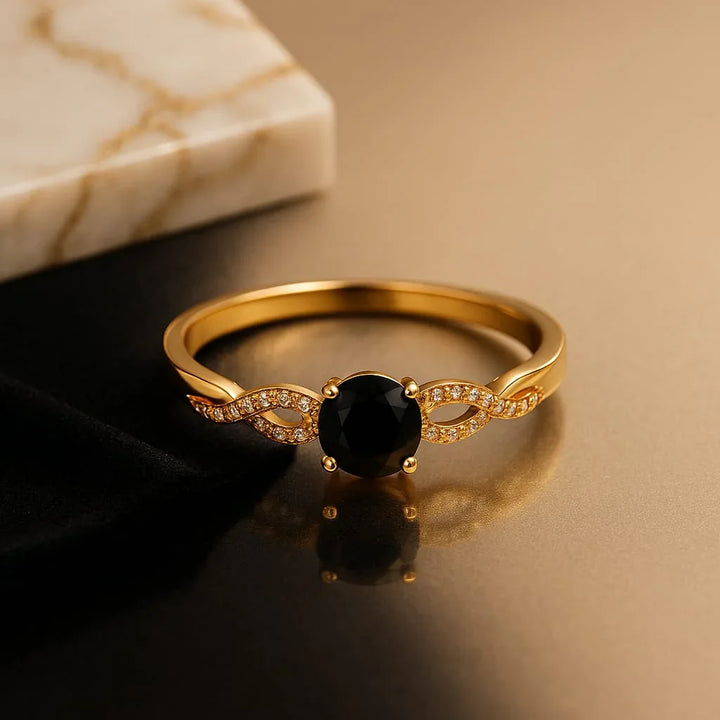 🖤 Deep jet-black round stone as the centerpiece of mystery